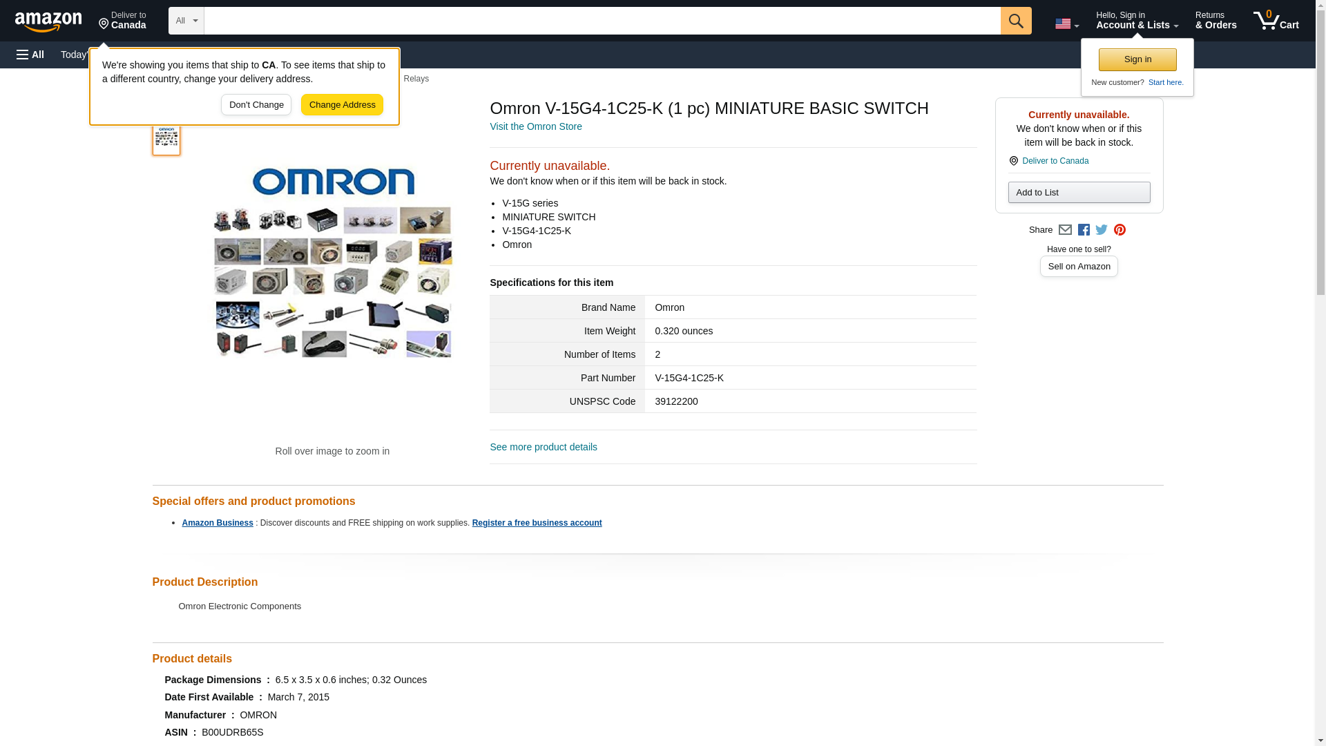 | Waldom | OMRON ELECTRONICS V-15G4-1C25-K | 1 | 1 | ||