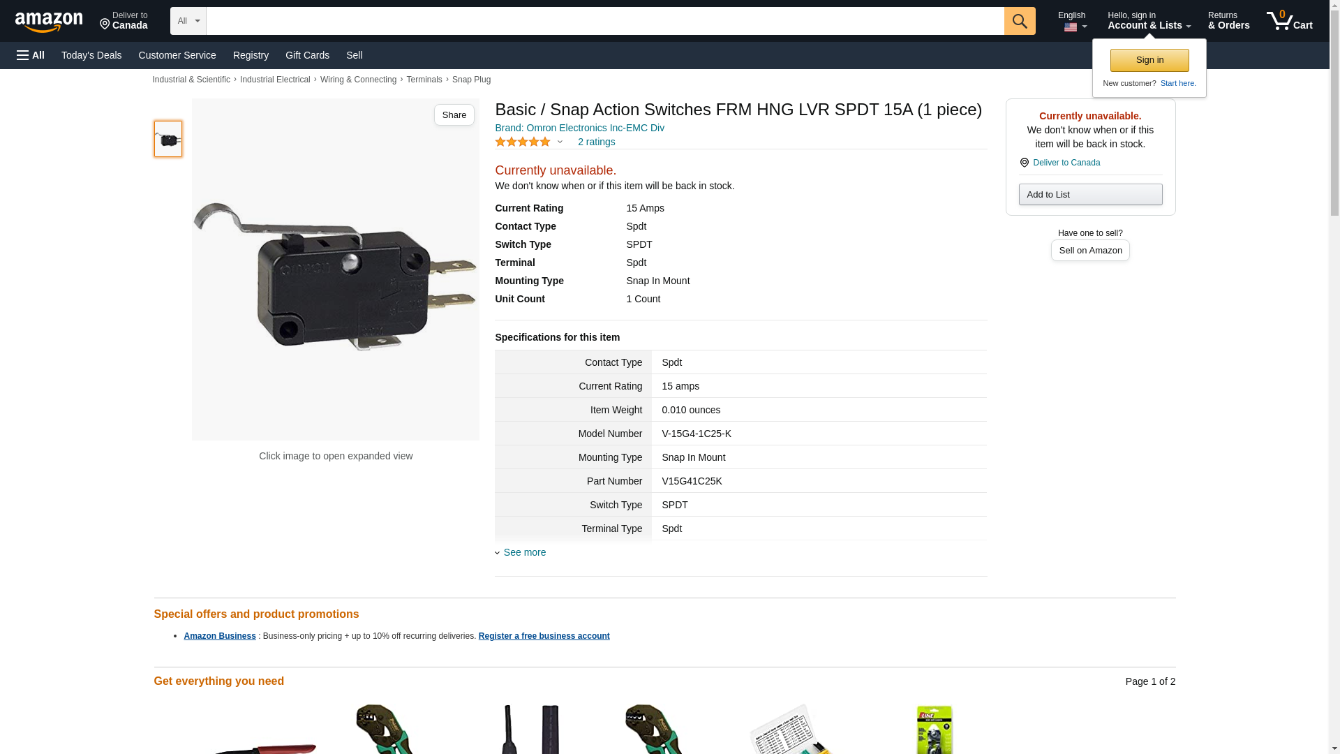 Basic / Snap Action Switches FRM HNG LVR SPDT 15A