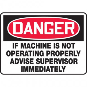 If Machine Is Not Operating Properly Advise Supervisor Immediately 10" x 14" - MEQM168XF - Jendco Safety Supply