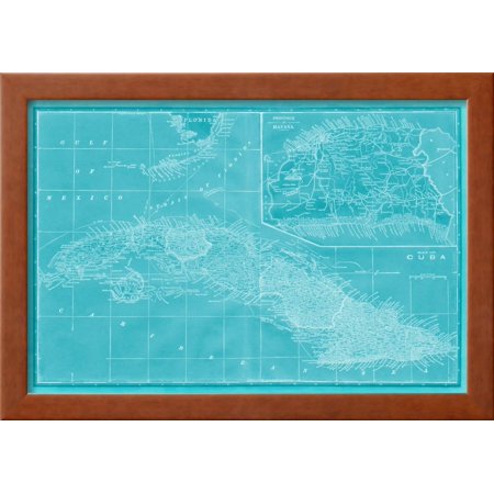 <ul> <li>Title: Map of Cuba in Aqua</li> <li>Artist: Vision Studio</li> <li>Product Type: Framed Art Print</li> <li>Framed in SOHO Pecan</li> <li>Arrives ready-to-hang for fast, simple installation</li> <li>Framed Size: 22x15.5 in.</li> <li>Handcrafted in the USA</li> </ul>