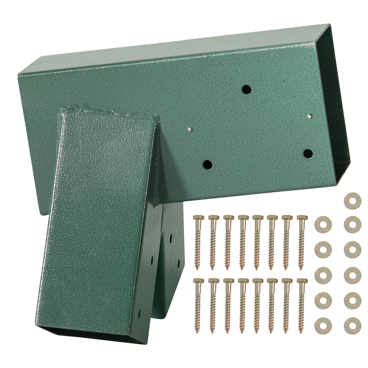- · the pre-drilled holes make for simple attachments, just slide the wood in and bolt with the included 5/16 x 3-inch lag bolts and washers.