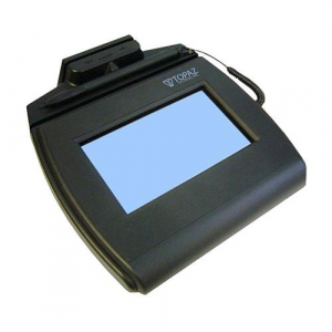 The SigLite LCD 4x3 MSR has all the benefits of Topaz electronic signatures plus the additional feature of an attached MSR. Like the T-LBK750, the TM-LBK750 models are Topaz's medium-sized, low-cost, pressure-sensitive electronic signature pads with a backlit transflective LCD. Featuring an LCD touchpad and stylus, these models show the signature on the signature pad, as well as the computer screen.