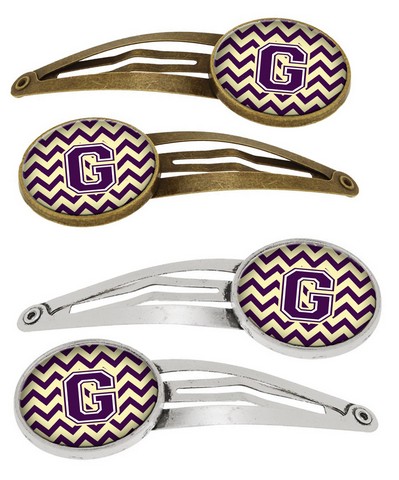 Carolines Treasures CJ1058-GHCS4 Letter G Chevron Purple & Gold Barrettes Hair Clips, 0.75 x 0.25 x 2.25 in. - Set o
