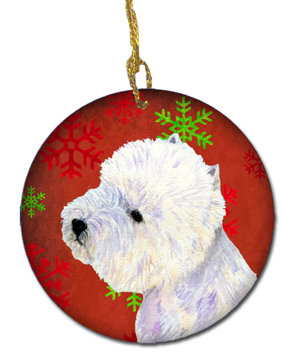 Caroline's Treasures LH9315-CO1 Westie Red and Green Snowflakes Holiday Christmas Ceramic Ornament, 3 in, Multicolor
