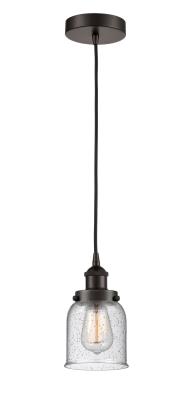 INNOVATIONS 616-1PH-OB-G54-LED 1-Light Mini Pendant Oil Rubbed Bronze. Collection: Edison. Style: Industrial, Farmhouse, Restoration-Vintage, Traditional. Metal Finish: Oil Rubbed Bronze. Metal Finish (Canopy/Backplate): Oil Rubbed Bronze. Material: Steel, Cast Brass, Glass. Dimension(in): 10(H) x 5(W) x 5(Dia). Min/Max Height (Fixture Height with Cord or Included Stems & Canopy)(in): 13/131. Wire/Cord: 10 Feet Of Black Fabric Cord. Bulb: (1)6W Medium Base,Dimmable(Not Included). Maximum Wattage Per Socket: 100. Voltage: 120. Color Temperature (Kelvin): 2700. CRI: 82. Lumens: 600. Glass Shade Description: Seedy Small Bell. Glass or Metal Shade Color: Seedy. Shade Material: Glass. Glass Type: Seeded. Shade Shape: Bell. Shade Dimension(in): 5(W) x 5.75(H). Fitter Measurement (Glass Or Metal Shade Fitter Size): 3.25 inch Fitter. Canopy Dimension(in): 4.75(Dia) x 1(H). Sloped Ceiling Compatible: Yes. California Proposition 65 Warning Required: Yes. UL & ETL Certification: Damp Location.