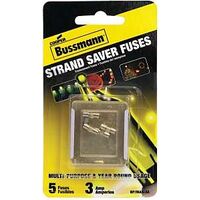 Cooper Bussmann BP/MAS-3A 3 Amp Glass Fast Acting Cartridge Fuse 125V Ul Listed in Buss Blue Packaging, Carded, 5-Pack, Piece