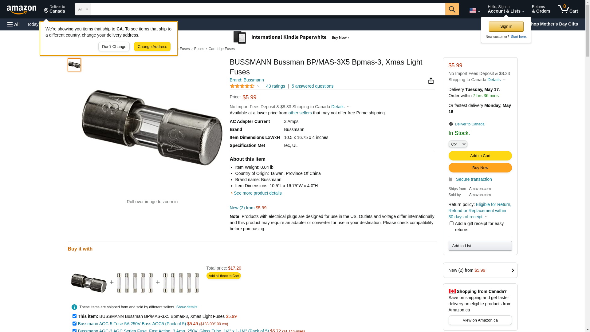 | BP-MAS-3A-BUSSMANN | 1 | -2 | 1 | 1 @ $2.81 | |