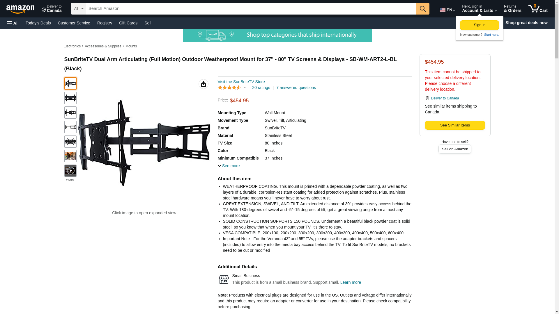 Buy SunbriteTV SBWMART2LBL As low as $335.25 Out of Stock SunBriteTV SB-WM-ART2-L-BL Mounting Arm for Flat Panel Display - Black
