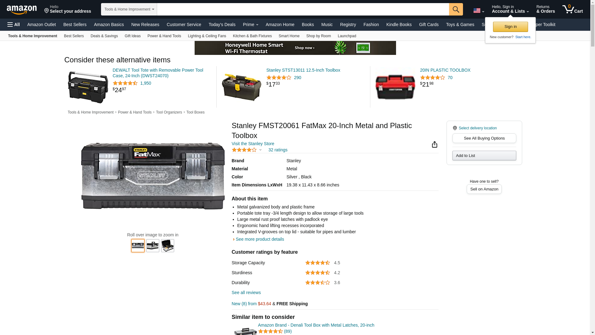 Toolschest.com|Toolschest.com. Stanley Hand Tools FMST20061 20 in. Metal & Plastic Tool Box