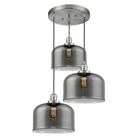 Innovations Lighting 211/3-SN-G73 Large Bell-3 Light Multi-Pendant-13 Inches Wide, Satin Nickel Finish with Smoked Glass