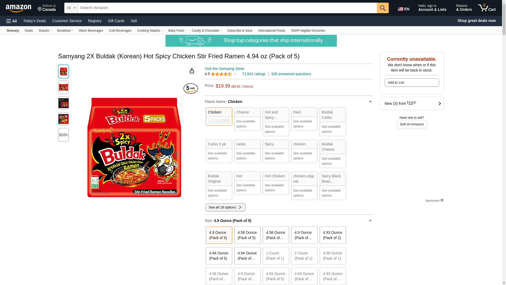 Amazon.com : Samyang 2X Buldak (Korean) Hot Spicy Chicken Stir Fried Ramen 4.94 oz (Pack of 5) : Grocery & Gourmet Food