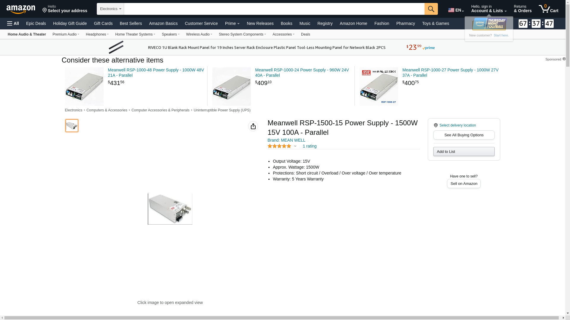 | electricautomationnetwork.com | RSP-1500-15 | 1 | 1 | 1 @ $453.26 | |