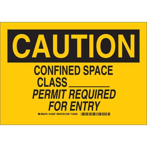 Brady 124270 CAUTION Confined Space Class _______ Permit Required For Entry Sign - Self-sticking Polyester - Black on Yellow - 10 x 14
