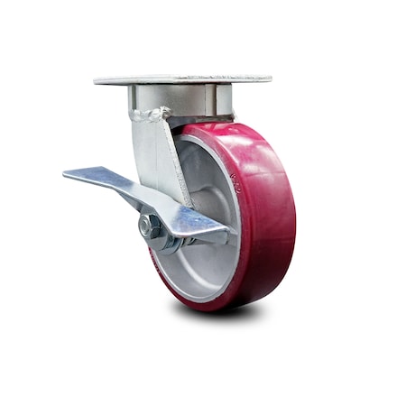 Kingpinless Polyurethane on Aluminum Swivel Top Plate Caster w/6" x 2" Maroon Wheel & Side Lck Brake - 1200 lbs Capacity/Caster - Service Caster Brand