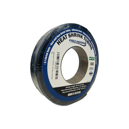 Kable Kontrol 1" Inch Heat Shrink Tubing 3:1 Dual Wall Adhesive Lined 50 Ft Long - Cable Sleeve for Automotive, Marine, and Electrical Use – Waterproof Heat Shrink Tube Wire Wrap, Black