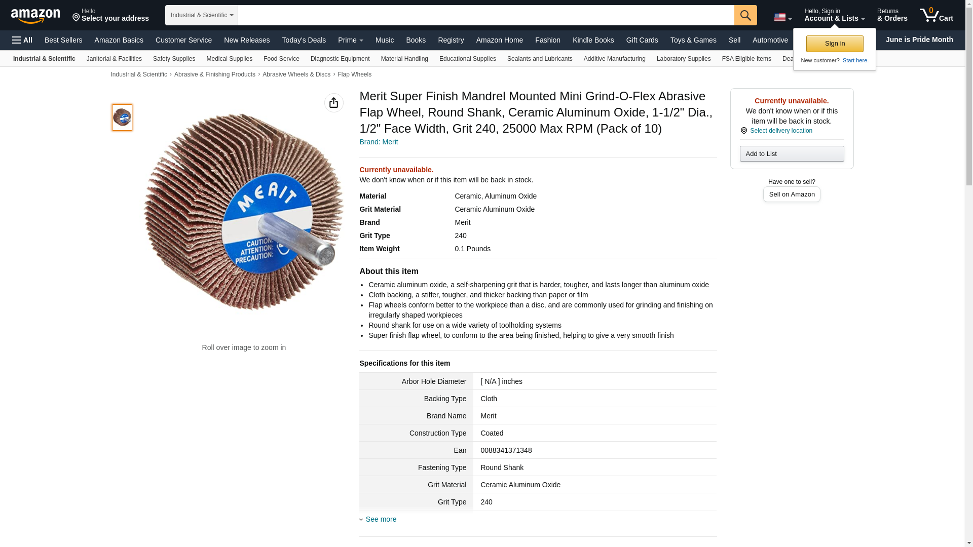 Merit Super Finish Mandrel Mounted Mini Grind-O-Flex Abrasive Flap Wheel, Round Shank, Ceramic Aluminum Oxide, 1-1/2" Dia., 1/2" Face Width, Grit 240, 25000 Max RPM (Pack of 10)