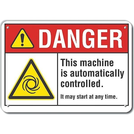 Plastic Machine & Operation Danger Sign, Horizontal Rectangle, Number of Printed Sides 1, English, Sign Format ANSI/OSHA Format, Sign Legend This Machine Is Automatically Controlled. It May Start At Any Time., Sign Legend Background Color White, Sign Legend Style Symbol and Text