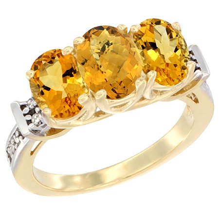 10K Yellow Gold Natural Whisky Quartz & Citrine Sides Ring 3-Stone Oval Diamond Accent, sizes 5 - 10