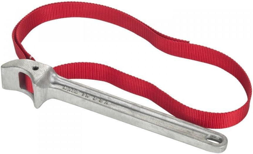 Multipurpose Strap Wrench Youll find many uses for this heavy-duty strap wrench. The 53" long nylon strap wont mar precision surfaces of shafts, pulleys, or other components. Its especially useful on small engine pulleys. Special head design self-tightens the strap as force is applied. Lightweight, with 12" long handle. No. 7206 Strap wrench. No. 305085 Replacement strap.