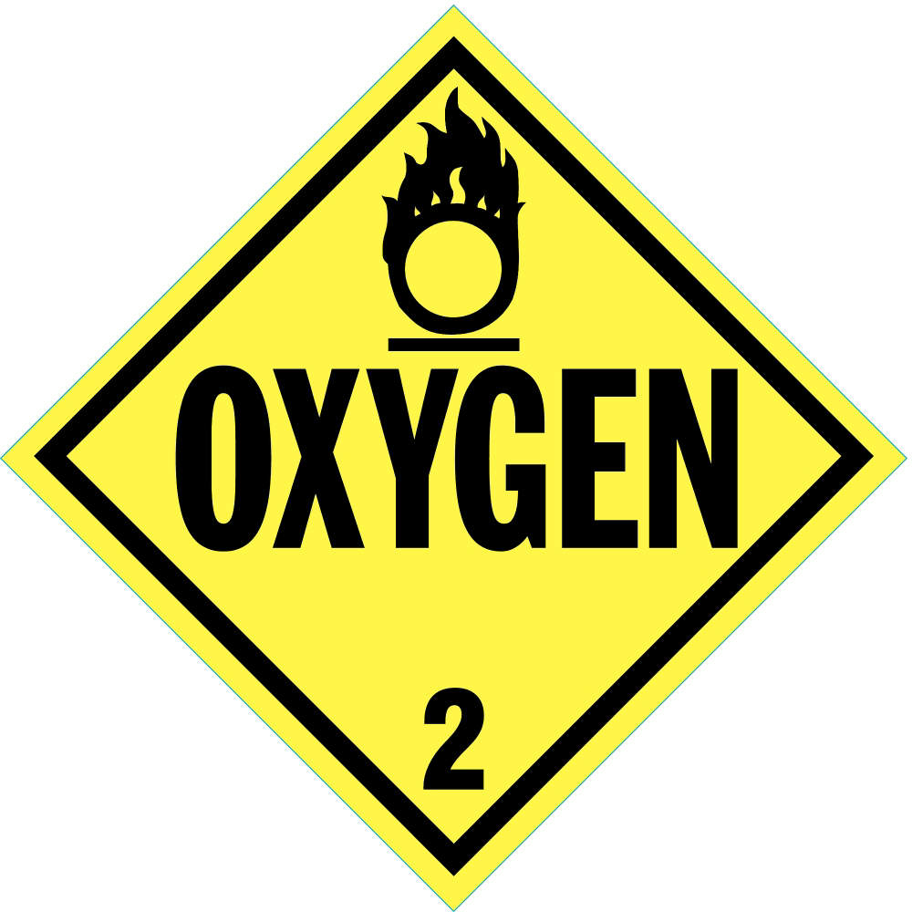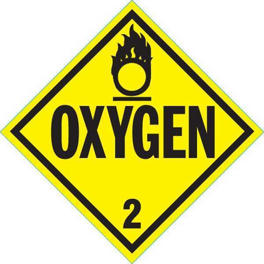 - <b>Price For:</b> Each <b>Item</b>: Vehicle Placard <b>Standards</b>: 49 CFR 172 <b>Legend/Background Color</b>: Black/Yellow <b>Legend</b>: Oxygen <b>Class</b>: 2 <b>Width</b>: 10-4/5" <b>Material</b>: Self-Adhesive Vinyl <b>Includes</b>: Self-Sticking Feature <b>Height</b>: 10-4/5" <b>Country of Origin (subject to change)</b>: United States
