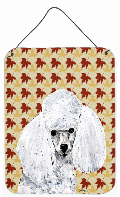 Carolines Treasures SC9677DS1216 White Toy Poodle Fall Leaves Aluminum Metal Wall Or Door Hanging Prints