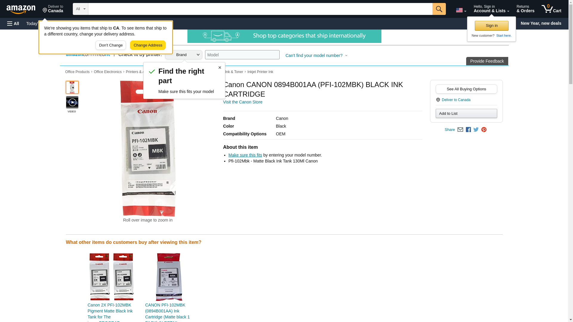 CNM0894B001AA - Canon PFI-102MBK Ink Cartridge