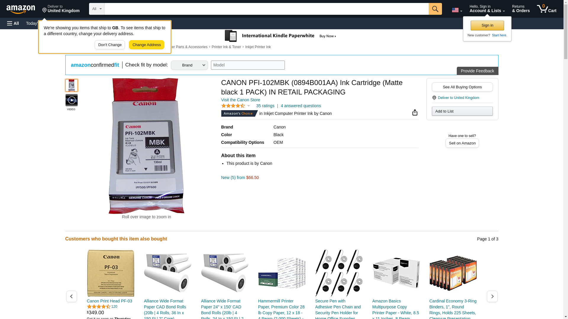 | Feature | Canon Compatible PFI-102MBK Matte Black Ink Cartridge (0894B001AA) |