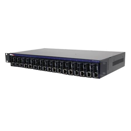| Feature | Marketing Information: The IE-PowerTray/18-AC is a high-density mounting and powering chassis for MiniMc, MiniMc SFP, MiniMc-Gigabit, Giga-MiniMc, IE-MiniMc, IE-Giga-MiniMc and IE-ModeConverter SFP/SFP Media and Mode Converters.| Product Name: IE-PowerTray/18-AC (-20\xb0C to +70\xb0C), 18-Slot AC Powered Chassis| Product Type: Media Converter Chassis |