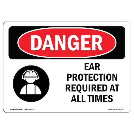 OSHA Danger Sign - Ear Protection Required at All Times | Decal | Protect Your Business, Construction Site, Warehouse & Shop Area | Made in The USA