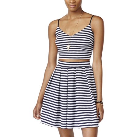 City Studio Womens Juniors Striped Textured Crop Top Dress