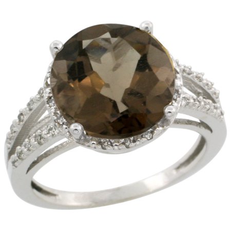 14K White Gold Diamond Natural Smoky Topaz Ring Round 11mm, sizes 5-10