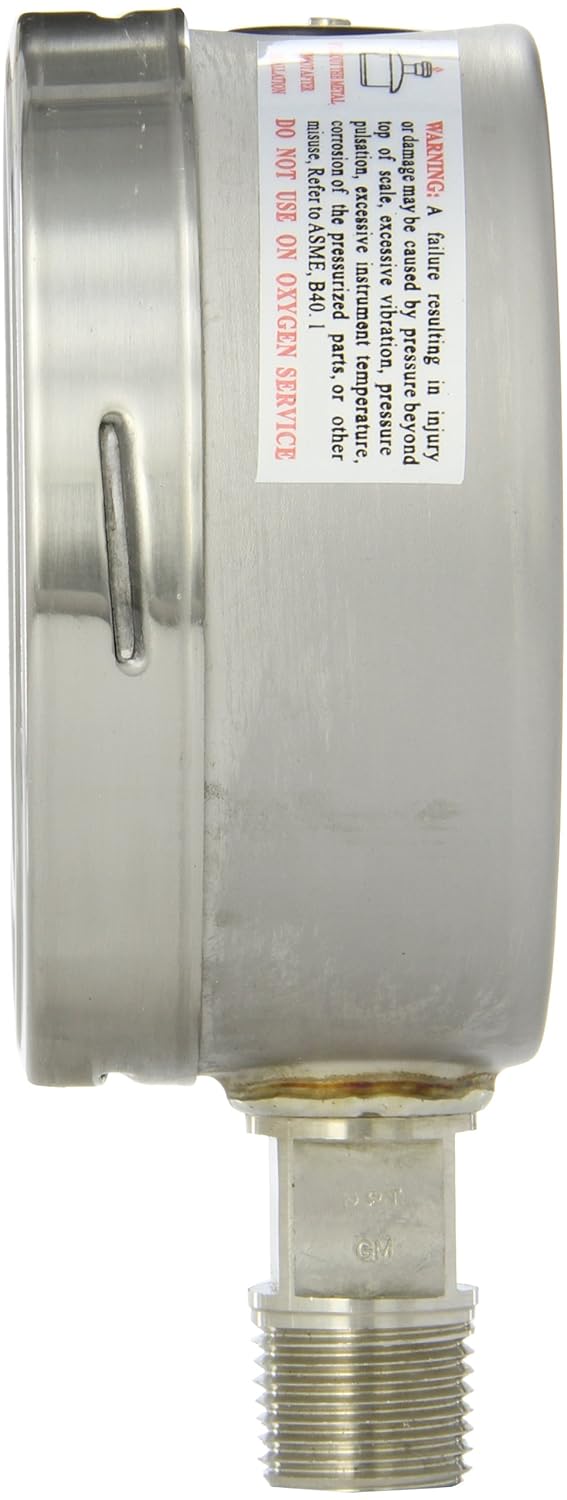 PIC Gauge 4001-2LCE 4" Dial, 30/0/100 psi Range, 1/2" Male NPT Connection Size, Bottom Mount Dry Process Pressure Gauge with a Stainless Steel Case and Internals, Removable Stainless Steel Bezel, and Laminated Safety Glass Lens