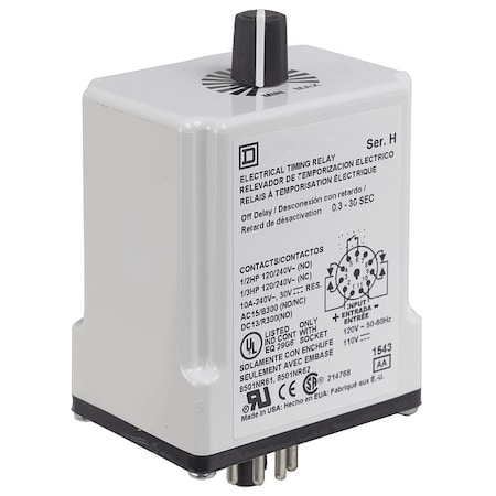 9050JCK28PTV14 Square D Timer Relay 240vac 10a T-jck
