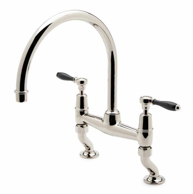 Waterworks - 07-71538-88727 - Easton Classic Two Hole Bridge Gooseneck Kitchen Faucet, Black Porcelain Lever Handles and in Burnished Nickel, 1.75gpm