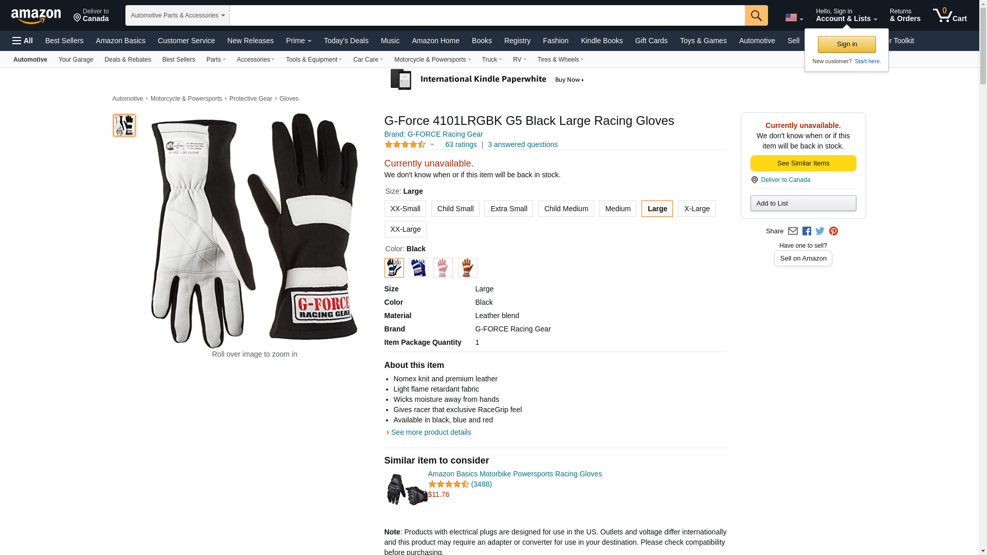 G-Force 4101LRGBK G5 Black Large Racing Gloves