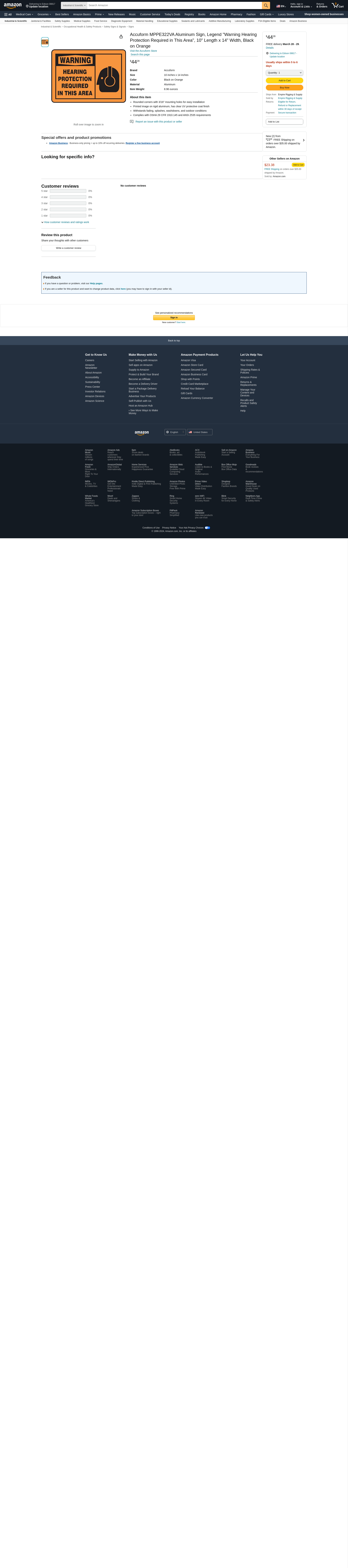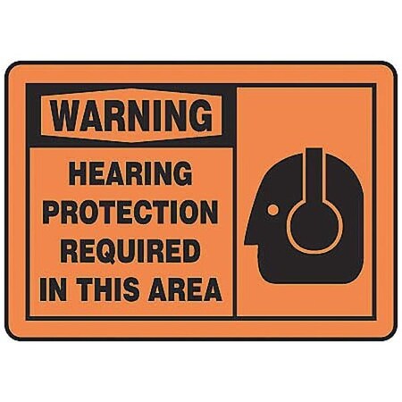 Accuform MPPE322VA Aluminum Sign, Legend "Warning Hearing Protection Required in This Area", 10" Length x 14" Width, Black on Orange