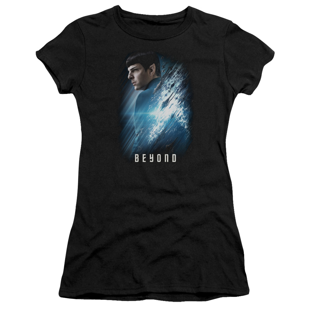 Trevco CBS1805-JS-3 Star Trek Beyond & Spock Poster Short Sleeve Junior Sheer Cotton T-Shirt, Black - Large