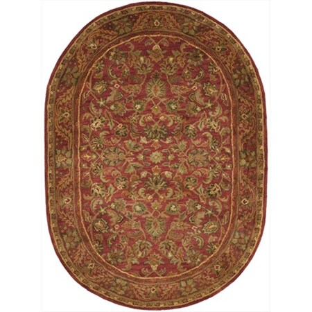 SAFAVIEH Antiquity Collection 4'6" x 6'6" Oval Red / Red AT52E Handmade Traditional Oriental Premium Wool Area Rug