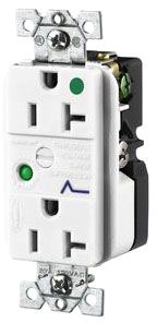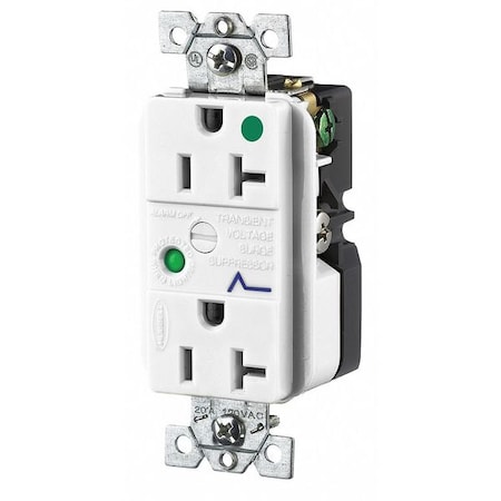 Hubbell HBL8362WSA Spike Shield Circuit Guard Hospital Grade Surge Suppression Duplex Receptacle with Light and Alarm, 125V AC, 60Hz, 20A, 2 Pole, 3 Wire, White