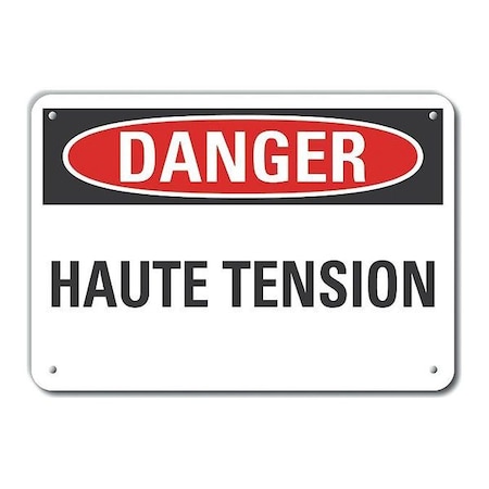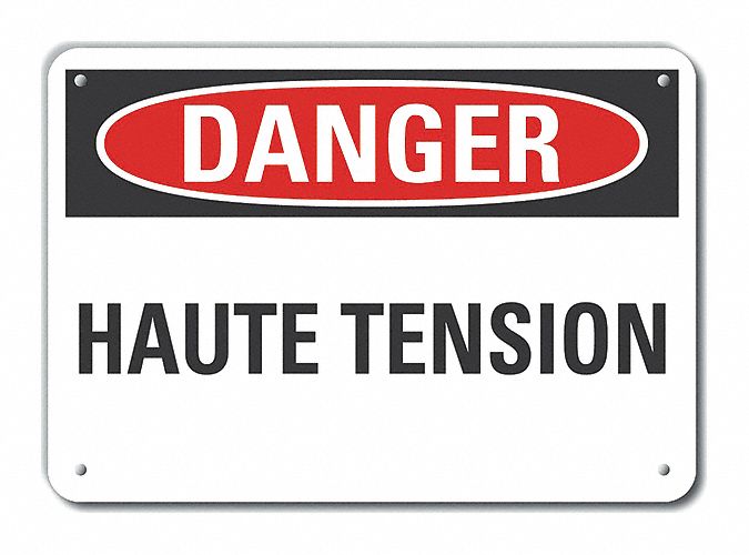 Danger Sign, Vertical Rectangle, Number of Printed Sides 1, English, Sign Format Traditional OSHA, Sign Legend Haute Tension, Sign Legend Background Color White, Sign Legend Style Text