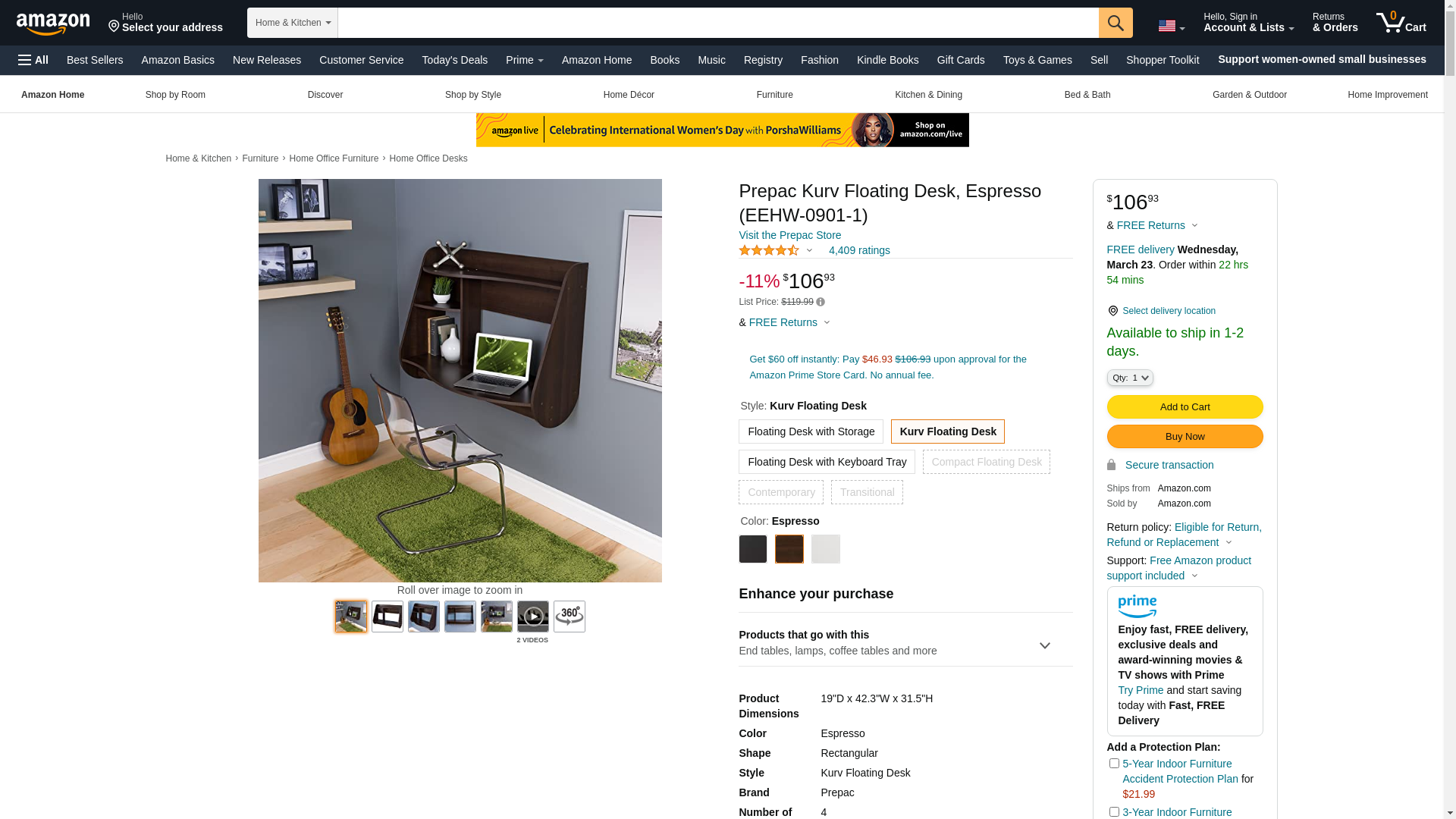 Prepac Kurv Floating Desk, Espresso (EEHW-0901-1)