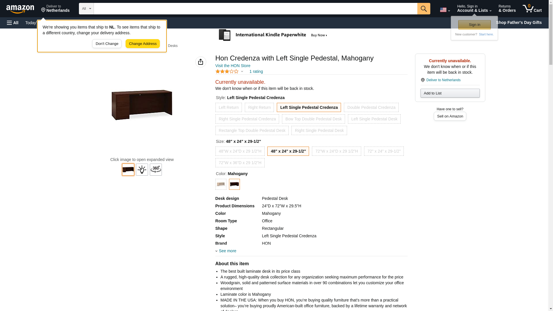 Hon Credenza with Left Single Pedestal, 48 by 24 by 29-1/2-Inch, Mahogany