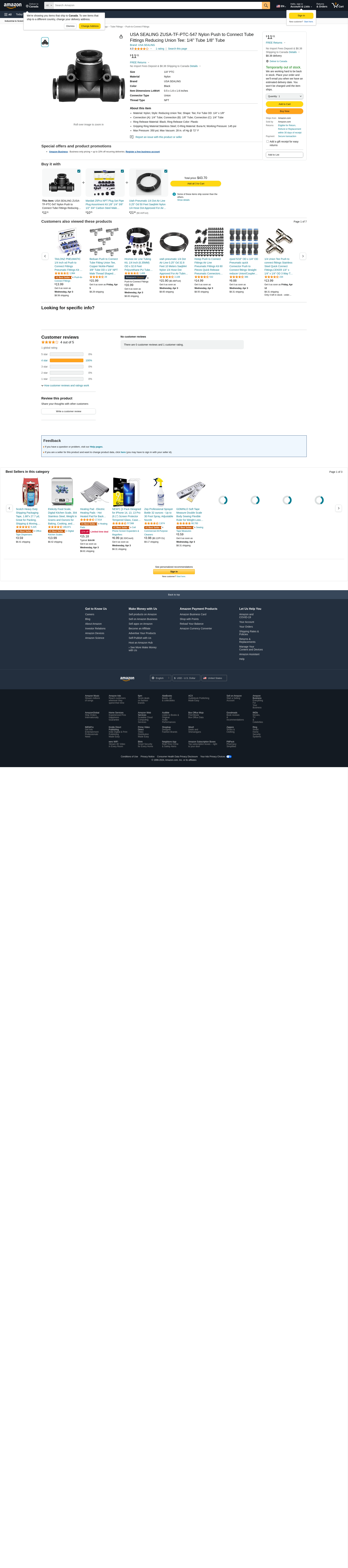 USA SEALING ZUSA-TF-PTC-547 Nylon Push to Connect Tube Fittings Reducing Union Tee: 1/4" Tube 1/8" Tube
