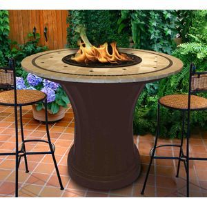 California Outdoor Concepts 7651-BR-PG10-LAG-48 Rodeo Balcony Height Fire Pit-Brown-Black Reflective Glass-Laguna Mosaic