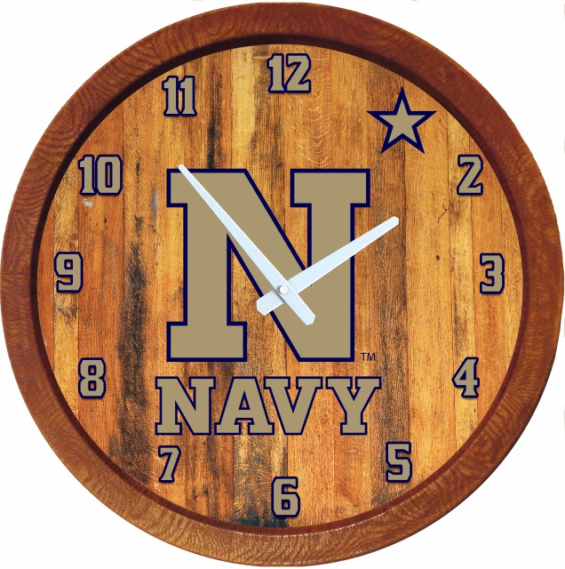 Grimm Industries NA-560-01 20 in. Barrel Team Wall Clock - NA Color Primary Logo, White, Navy Blue & Gold