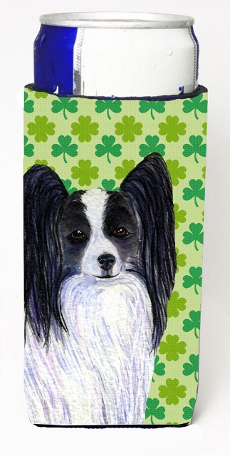 Caroline's Treasures SS4436MUK Papillon St. Patrick's Day Shamrock Portrait Ultra Hugger for slim cans Can Cooler Sleeve Hugger Machine Washable Drink Sleeve Hugger Collapsible Insulator Beverage Insu