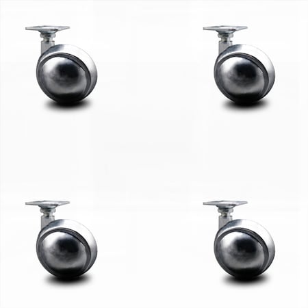 2-1/2 Inch Swivel Metal Ball Caster – Bright Chrome Finish – 1-1/2 Inch by 1-1/2 Inch Top Plate – 400 lbs. Total Capacity – Set of 4 – Service Caster Brand