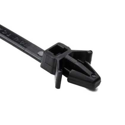 Hellermanntyton 1-Pc Cable Tie/arrowhead Mount W/wings, 6"l, 50Lb, 0.24 - 0.26" Hole Dia, Pa66Hirhsuv, Black, 500/bag - 126-00049