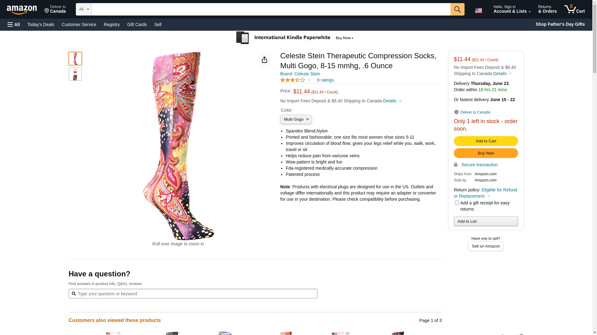 Celeste Stein Therapeutic Compression Socks, Multi Gogo, 8-15 mmhg, .6 Ounce