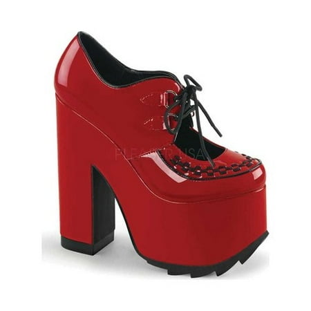 Demonia Womens Pf Cutout Bootie W/D-Ring Front Tie Detail, Red Pat, Size -9